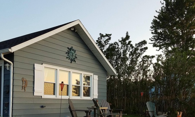 This quaint cottage sits only 40 ft off the Lakefront. Enjoy the most beautiful sunrises, sunsets & moon rise from the lakefront deck. The cottage has two bedrooms and is perfect for one couple . It is very tastefully done and has a very relaxing feel to it. The kitchen and living spaces are very comfortable and your access to the decks is made from the sliding glass doors. Included are stove, fridge microwave, toaster-oven, coffee maker, all that you would need to make your stay like home. There is a grill outside and a fire pit for those sunset fires.