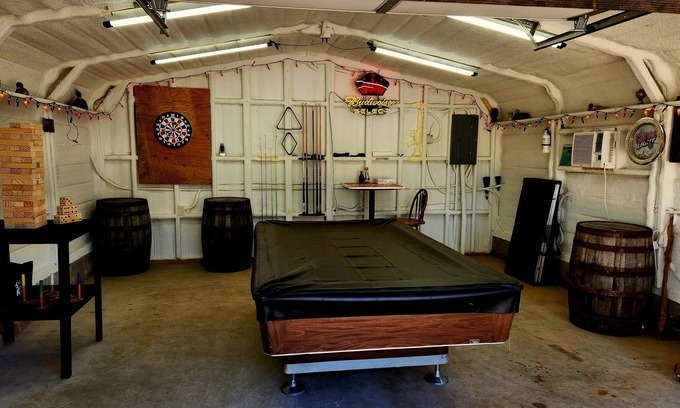 Amazing lake front property, sleeps 10. Private dock with boat slip on the deep, beautiful West Side of Possum Kingdom Lake. Come fish, swim,boat, ski, canoe or kayak around the lake. Relax and BBQ, shoot pool in the game room, play cornhole, horseshoes, giant Jenga or kick back in the hammock. Fully outfitted, newly remodeled kitchen. Come relax and watch the beautiful Texas sunsets or star gaze off the deck on the dock. Great for families, fishing tournaments, ladies' weekends, family reunions, etc. Public boat ramp and walking trail within 1 mile. Resturants near by.
