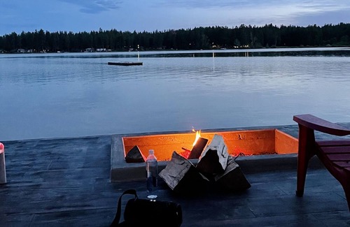 Great Lake Front home with large deck for entertaining. Backyard with fire pit, hammock, sandy beach, floating dock and lake front right in your own back yard. Enjoy beautiful sunsets and morning coffee overlooking the Lake. Large fireplace for cooler evenings in living room with sectional couch that provides lots of seatting and large windows overlooking the lake. Kitchen and second bathroom have heated tile floors. All kitchen cooking utensils, pots, pans, margarita machine, Gas BBQ and plenty of dishes and glassware all for use while you are enjoying your stay. Paddle boat for use on lake. Master bedroom has a king memory foam bed and bathroom, 2nd bedroom has queen pillow top mattress, 3rd bedroom has trundle bed and 4th bedroom has 2 twin beds.