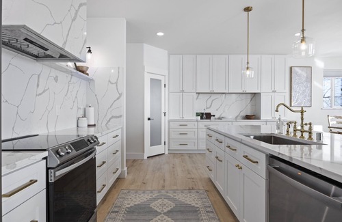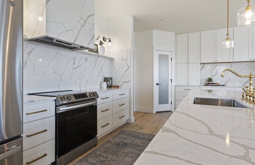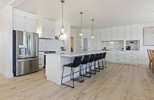 The kitchen features high-end finishes and appliances. Fully equipped with all the utensils, pans, and cutlery you could need to make delicious meals. Cooking feels less like a chore and more like a luxury when you cook in this kitchen!