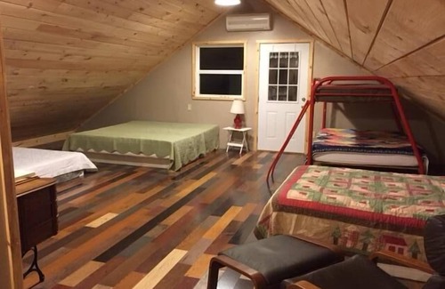 This three-story cabin consists of four bunkrooms, a third floor group room, and a private family room. All 6 rooms have separate entrances and private baths.