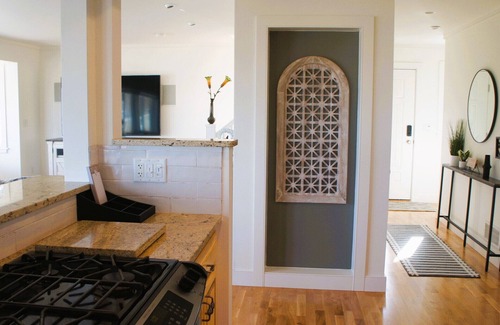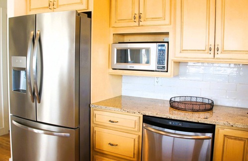 The lakeside house is a 3-bedroom, 2.5-bathroom contemporary-style home. The master bedroom has a Bayview area where you can view Buckeye Lake. In the master bedroom, there is a double vanity, rain shower, and soaking tub. All rooms come with queen beds, and one room has 2 extra twin beds for extra guests, one connected straight to the other bathroom. The two other bedrooms come with walk-in closets for all your vacation items. Their bathroom also has a double vanity with a tub shower. Downstairs is a kitchen stocked with a large Fridge, Freezer, Electric Stove, Oven, Silverware, Dishes, and Cups for all your cooking and serving needs. The spacious living room also includes a Baywindow, with large seats around a 75-inch TV. Downstairs also includes a 0.5-bathroom, dirt room, and an office. The house includes washed sheets, pillows, towels, and surfaces for each guest(s). All bathrooms include hand soap, body wash, shampoo, conditioner, q-tips, and a hair dryer. Outside includes a fenced area great for pets and a 1 car garage, with 3 additional parking spots. For any trailers or other guests, the Fairfield Beach State Boat Ramp and its large parking lot are across the street. The house is a short walk from amenities like the Buckeye Lake Winery, less than 1 mile away, pickleball and volleyball courts, and walking paths.