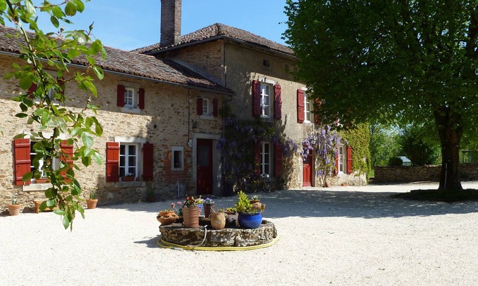 Set in the heart of the Limousin Périgord National Park La Broulie is a 350 year old farmhouse with some of the barns around the courtyard dating back to the 15th century. It is positioned in the middle of it's own 75 acres of farmland, woods and lake, and is wonderfully isolated with far reaching views over the surrounding countryside.
