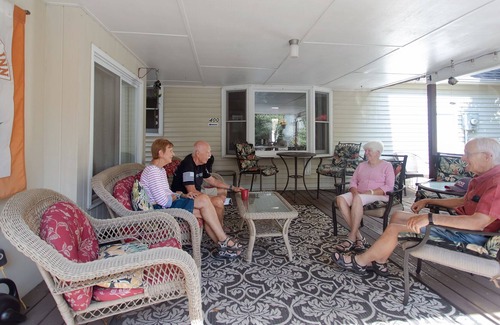 The Magnolia house has 3 guest rooms, 1 full kitchen and a living room for guests to relax and enjoy. It is the closest to the swimming pool and is located underneath a very large Magnolia Tree, hence the name given to this house.