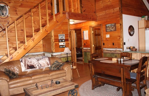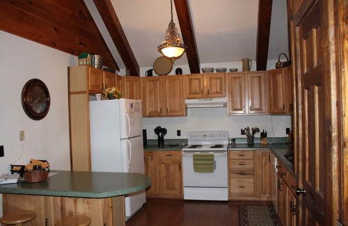Very private 3BR/2BA cabin, fully furnished.Cabin has a washer and dryer, and kitchen is fully furnished with dishwasher, coffee maker, microwave, pots, pans, dishware, utensils, silverware, oven, refrigerator, ice maker, stove, and toaster. All linens & towels are furnished. Start up toilet paper & paper towels provided.There are three bedrooms two have a queen bed & the other one has two twin beds.