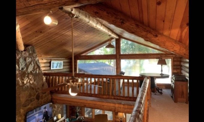 Beautiful log cabin located on the best beach on the east side of Pickerel Lake. 4 big bedrooms, sleeps 13 . Our lake home is spacious and has a great view of the lake. There is a big screened in porch with an outdoor fireplace, which is a great place to cozy up next to a fire and watch the sunset.