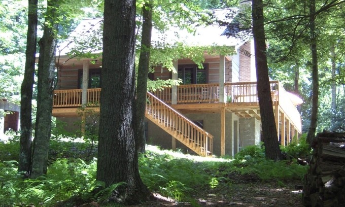 The kitchen is well equipped and all linens are provided. Relax on the big wrap around porches as dusk falls or as the sun rises over the crest and enjoy nature at its finest as the turkeys fly over the ridge, or the deer emerge from their resting places in the laurels. Don't forget your camera!
