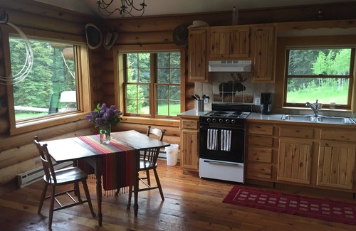 Beautiful, private one bedroom log cabin on Trail Creek Ranch. Set above the Ranch proper with complete privacy - this is an ideal honeymoon cabin or retreat from the busy world. One handmade log queen bed, full bath with tub, washer and dryer, full kitchen and living room with a wood stove. A sitting porch that overlooks the ranch and the ranch pond, old growth timber and on to the Sleeping Indian in the Gros Ventre mountain range. Amazing views.