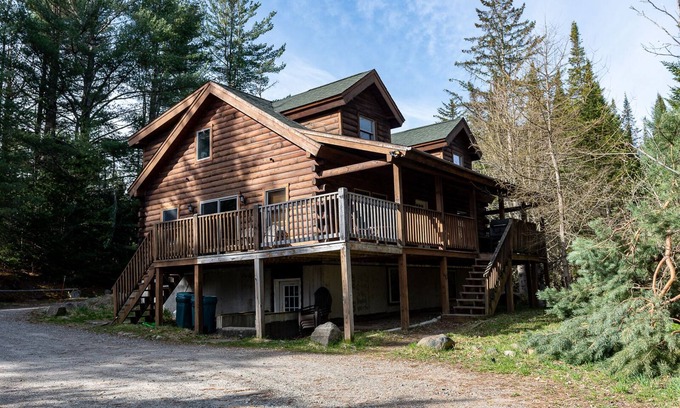 PHANTOM is a spacious and comfortable 3 bedroom + loft / 3 bathroom log home, close to Lake Placid village, yet secluded from the main road. Wrap around porch, overlooking a lovely stream. Pet friendly. Relax with the whole family at this peaceful place, which can comfortably accommodate up to 10 people.