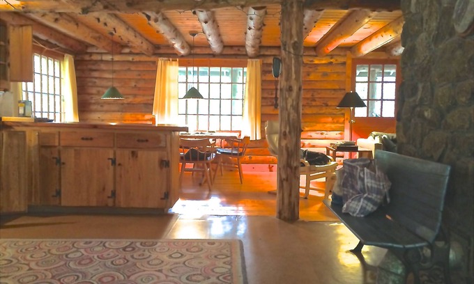 Luxury log house on 14 wooded acres on a quiet country road. Many nearby walking and hiking trails, downhill skiing, XC skiing out the back door. Nicely furnished home with a cozy living room, large fieldstone fireplace. Fully equipped kitchen with dual fuel kitchen range, dishwasher, refrigerator, microwave. Linens and towels provided. Wireless Internet. Level 2 EV charge for your electric vehicle.