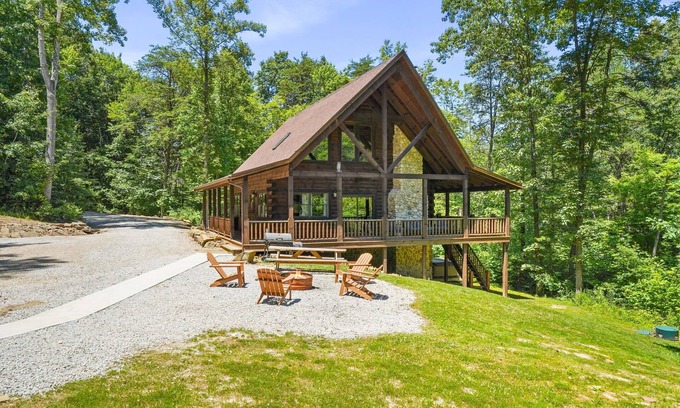 Make your way through through beautiful pine trees as you arrive at your luxury log cabin! Grizzly Ridge Cabin is located on 20 private wooded acres. Tranquil, wooded and secluded. Private and fenced in-ground swimming pool available Memorial weekend through Labor Day, September 2, 2024.