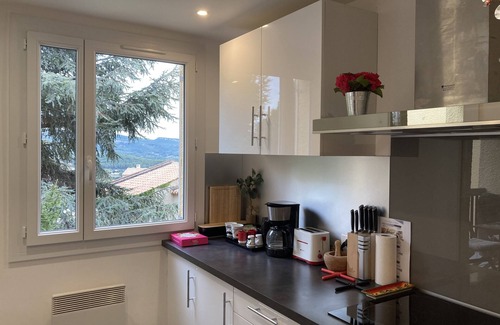 Outside, around the residence, 360 ° view on the currant berry, the crown of Charlemagne, the creeks, the countryside, vineyards and flowery garden. Hiking is possible from the residence which is located in the heart of a preserved pine forest.
