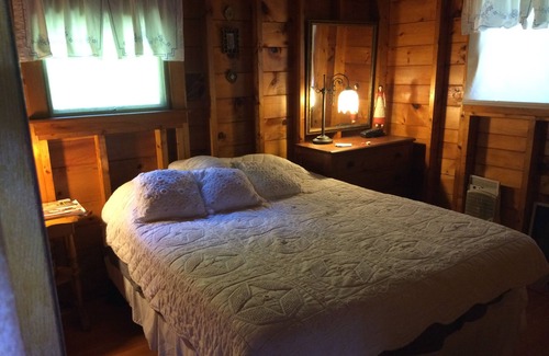 Cabin includes, Full kitchen, wood burning stove, linens, telephone, microwave, toaster, coffee maker, dish washer dishes/utensils, TV, WIFI, books, games, BBQ grill, small deck and stone porch.