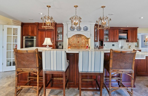 Upstairs, you'll find four thoughtfully decorated bedrooms, each offering plush bedding and lovely furnishings. The master suite features a king-sized bed, an en-suite bathroom, and french doors with lovely Juliet balcony. The remaining bedrooms offer spacious retreats for guests or family members.