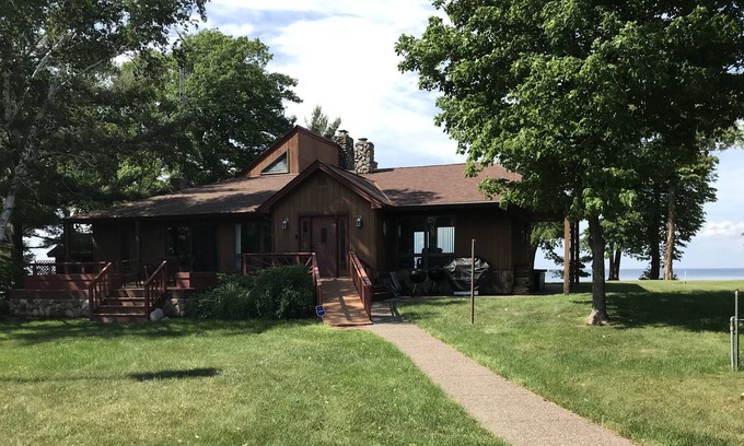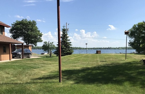 Lake home on a peninsula on south shore of Mille lacs lake, property consists of main house and two stand alone guest homes, perfect for three couples, modern kitchen, 2 decks, dock on bay side for mooring your boat, great swimming on lake side, world class fishing and a nearby golf course. Approximately one and a half hours from Twin Cities, bring your own boat or rent one nearby.