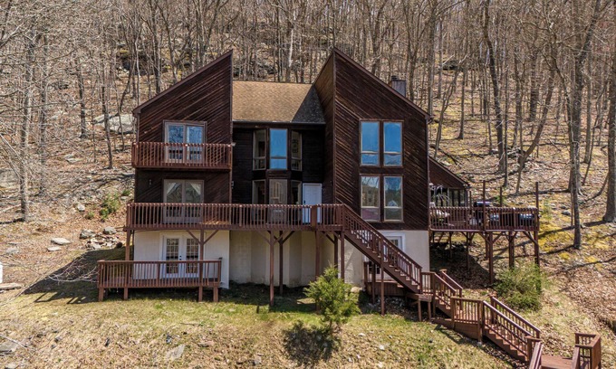 Nestled in a private community, this lodge is conveniently located near numerous attractions in the scenic Poconos. Enjoy the comfort, privacy, and countless opportunities for adventure right at your doorstep. Game room for fun-filled activities