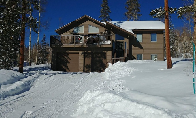 Spacious 4+ bedroom cabin/mountain house, located on Buffalo Mountain, Beautiful mountain views from every window, gas fireplace, In the heart of Summit ski country, (A-Basin, Keystone, Breckenridge and Copper on free bus line,) it backs to National Forest and trails for hiking, cross country skiing and snow-shoeing. 2 large decks and grill for outdoor cooking. Convenient garage entry and indoor storage area for sports equipment, no trekking through the snow and ice. Remote but 2 miles from restaurants, outlet mall shopping and 4 miles from Dillon Reservoir. Great summer and winter playground. 4 sets of snowshoes included. The cabin is fully equipped with kitchen supplies, 2 tables that extend to seat eight people each, and bedding for 1 king, 2 queens, 2 singes, 1 double futon, and 1 single futon. Extra air mattresses in closet. Washer and dryer, Family room, with games, puzzles and DVD/VCR .
