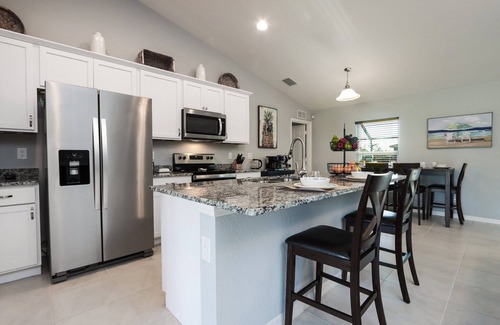 This Cape Coral vacation rental is situated in the serene northeast region of the city, making it an ideal spot for a tranquil vacation. But when you're looking for some adventure, the historic Fort Myers River District is only 9 miles away. This vibrant area is renowned for its historic buildings, art galleries, shops, restaurants, and bars. Don't miss out on this fabulous opportunity to stay in style!