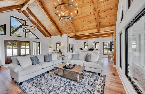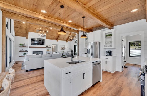With 4 bedrooms, two living areas, two decks and it's own PRIVATE dock you'll have all that you need for a little R and R on the water. This gorgeous home is new construction with all new furniture / mattresses / linens and ready to host your group! Our home can easily accommodate 5 cars.