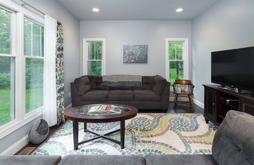 Kid friendly with high chair, childrens table in Kitchen if needed, swingset in yard, and toys and books.