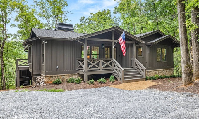 Overlooking Lake Burton with easy access to The Waterfall Club (3 mins), LaPrades and Anchorage Marinas, and the charming mountain towns of Clayton (12 mins), Helen (30 mins), Highlands (45 mins), and Hiawassee (20 mins), you and up to 10 people can experience the idyllic Blue Ridge Mountains of Northeast Georgia like a local in this breathtaking, new custom-built 4-bedroom, 5 bathroom (3 full, 2 half) mountain home!