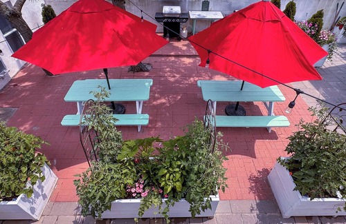 Backyard is a shared space that includes outdoor picnic benches, barbecue grill and outdoor shower to enjoy with your friends and family. This space is shared with guests from 3 other units.