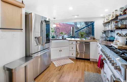 CHEF’S KITCHEN: Cooking basics, stainless steel appliances, breakfast bars w/ seating, spices, dishware & flatware, blender