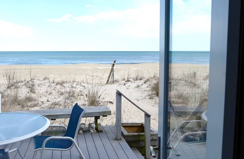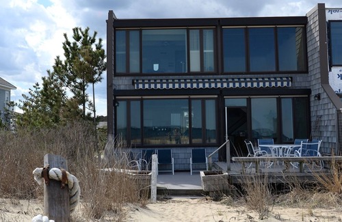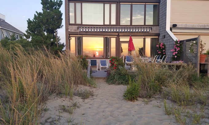 Beachfront Townhome which sleeps 8 (10 using sleep sofa), 4 full baths and outdoor shower, wonderful oceanside deck. Private North Shores Beach is right out the back door. Beach Club with pool and tennis conveniently located across the street. State Park with miles of hiking and biking trails is a half mile away. One mile from Downtown Rehoboth and its fabulous restaurants, shops and Funland. The house has lots of living space and a large dining room table which seats 10, a comfortable living room and a smaller table with an ocean view. The main floor opens to a deck overlooking the ocean and just steps from the beach. The top floor has 3 bedrooms and 2 full baths. The Master bedroom faces the ocean. The main floor has living space, dining room and kitchen as well as a den with a pull out couch. There is a full bath on the main floor as well. The bottom floor is walk-out and has a bedroom and another full bath. The large washer and dryer are also on this floor. The outdoor shower is just out the front door.