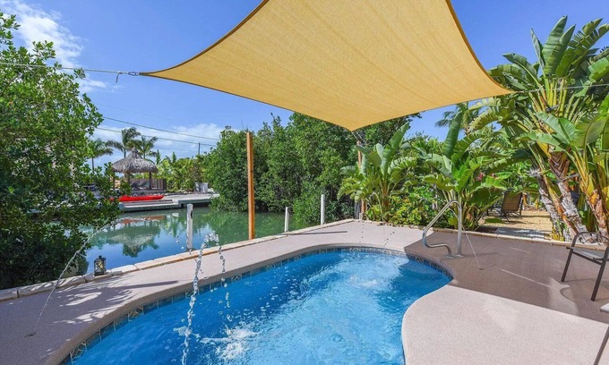 Make some memories at this unique and family-friendly place. Beautiful, custom designed concrete waterfront pool home with open water views and quick boating access.