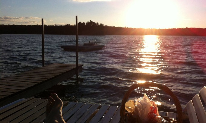 Beautiful private path down hill and walkway through wild, tamarack bog to lake's edge. Large dock, floating raft, shallow-sandy bottom swim area (no beach). Kayaks, canoes, and floaties too! Winter brings ice skating, boot hockey, and ice fishing on the lake. Cross country skiing, snow shoeing and sledding on property, groomed trails nearby.