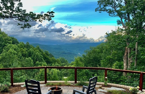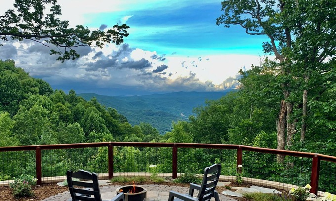 Cabin look on outside but modern farmhouse inside. Incredible view! Wonderfully landscaped. Very comfortable and private within a small community midway between Sparta NC and Galax VA..
