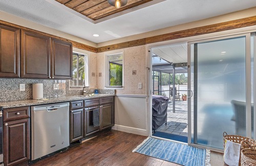 But the real highlight of this stunning vacation home is the private screened-in pool area. Surrounded by lush landscaping and featuring plenty of comfortable loungers and outdoor table, this is the perfect spot to relax and soak up the Florida sunshine. Take a dip in the sparkling pool, enjoy a cold drink and some good conversation, or simply kick back and enjoy the peace and tranquility of your own private oasis.