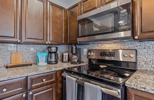 The dining room features a cute dinette that's perfect for enjoying meals with your loved ones, while the fully equipped kitchen boasts granite countertops, wood cabinetry, and stainless-steel appliances. Whether you're a seasoned chef or just looking to whip up some quick and easy meals, you'll love cooking and entertaining in this beautiful space.
