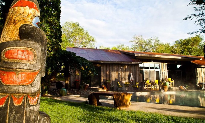 Small-Group Event Rate: up to 12 guests: Includes Lodge (sleeps 8), Hummingbird Hollow YURT (sleeps 2-4), River access, Yard, Hot Springs, Pool - $1400 per night. $300 deposit and Porta Potty required, see below: