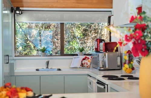 Our kitchen includes a microwave, electric oven, stove, under counter fridge with freezer compartment, rice cooker, toaster, kettle, coffee plunger and all crockery, cutlery, and utensils you would need. We do not provide food. We provide basic spices, as well as complimentary tea, coffee and sugar. A small grocery and basic liquor store are just a 3-minute walk away too.