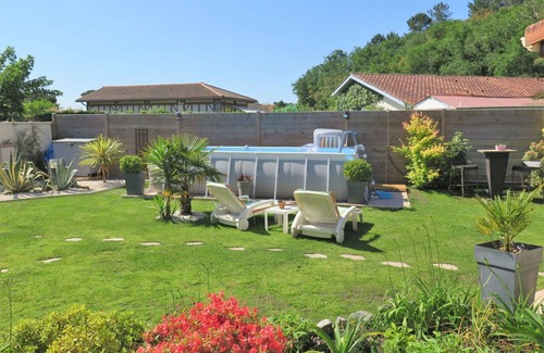 Nestled in the charming town of Labenne, France, "Les Camélias" is a delightful single-family house offering a perfect vacation rental. Surrounded by a well-kept garden with lush lawns and a wildlife area, this property boasts a private and fenced compound of 400 square meters. Guests can enjoy the convenience of on-premises parking for two cars and take a refreshing dip in the angular above-ground swimming pool (5 x 2 m, depth 107 cm), available seasonally from May 11 to September 21.