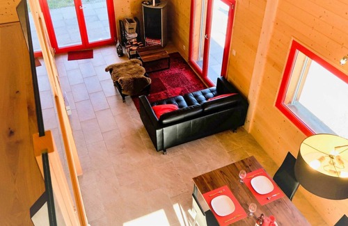 "Les Silènes", 3-room chalet 91 m2 on 2 levels. Bright, comfortable and wooden furniture furnishings: living/dining room with Scandinavian wood stove. Exit to the terrace. 1 room with 1 french bed (160 cm, length 200 cm). Open kitchen (oven, dishwasher, 4 ceramic glass hob hotplates, toaster, kettle, freezer, electric coffee machine, Capsules for coffee machine (Nespresso) extra, raclette grill, fondue Set (chinoise, cheese)). Shower/WC. Heating. Upper floor: small lounge with sloping ceilings with cable TV and DVD. 1 room with 2 beds (90 cm, length 200 cm). Sep. WC. Terrace, east facing position. Terrace furniture. Beautiful view of the mountains. Facilities: washing machine, dryer, iron, baby cot, hair dryer. Internet (WiFi). Reserved parking (2 cars). Please note: non-smoking house.