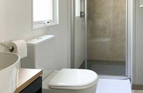 "Bungalow Isola Premium", 3-room bungalow 18 m2. Object suitable for 4 adults + 1 child. Bright, beautiful and modern furnishings: small living/dining room with 1 sofabed (80 cm, length 170 cm), dining table and air conditioning. Exit to the terrace. 1 small double bedroom with 1 double bed (1 x 160 cm, length 200 cm). 1 small room with 2 beds (80 cm, length 190 cm). Small, open kitchen (dishwasher, 4 ceramic glass hob hotplates). Shower/WC. Heating. Large terrace partly roofed. Terrace furniture. View of the countryside. Facilities: Internet (WiFi, free). Reserved parking (1 car) at the house. Please note: non-smoking house. Maximum 1 small pet/ dog allowed. LEAR 1167