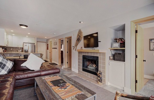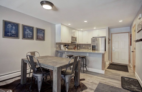 The primary bedroom is located on the back side of the condo, featuring a queen sized bed with an attached bathroom and plenty of windows to take in the all of Keystone. The guest bathroom is attached to the guest bedroom, which has a bunk bed with a double on the bottom and twin on the top. The washer and dryer is located in the guest bathroom. After a long day, relax in the complex's shared outdoor hot tub that is open year round. Step out your front door and it is a short 4 minute walk to putting your skis down! Walking to River Run Village takes less than 10 minutes, where you can enjoy all of the dining, shopping, and night life. There is parking for two vehicles at this condo.