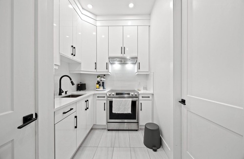 The kitchen - This full kitchen includes a fridge, toaster, stove, oven for your use.