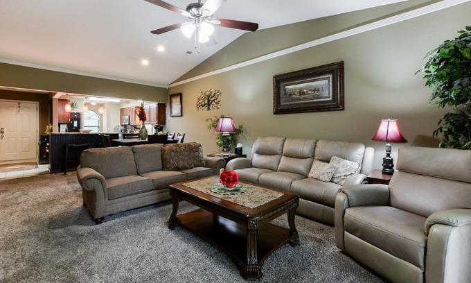 GREAT location!!! This upscale condo is just a blocks away from Branson's famous 76 Country Music Blvd.(The Strip), and just minutes away from all the entertainment with easy access to all the shows, restaurants, shopping, and activities for the entire family. Just a few short miles and you can be at either Table Rock or Taneycomo lakes with all the water sports, fishing, and outdoor activities available. Historic downtown and Branson Landing are also just a very short drive away. You can also take the 'scenic back way' to Silver Dollar city and be there in just minutes. You will be amazed at what a truly great location this is in the heart of Branson for your peaceful and relaxing stay in Branson.