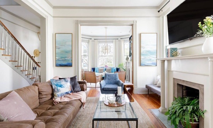 This premium home in Savannah can fit up to 12 guests with its 5 bedrooms, 3 bathrooms, and right near to Forsyth Park. With its modern amenities, including a patio, this home is great for those who want to be near everything Savannah has to offer. The professionally designed spaces offer open-concept layout and an eat-in kitchen perfect for entertaining.