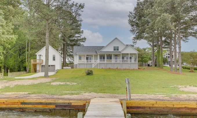 .Forget your worries in this spacious and serene space. Newly built with 3 bedrooms … 1 king, 2 full 2.5 bathrooms. Large open kitchen. Large family room, Laundry room. Fiber optic high speed 1000 mgb internet. This house is overlooking the Piankatank river. Perfect weekly getaway! Boat/trailer parking on property. Mooring on pier with boathouse with fishing &crabbing. We offer a 1 room flat on property that can be rented with house for a discounted rate Increasing occupancy to 8 guests.