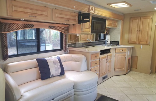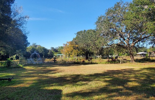 Enjoy a great stay in our spacious, luxurious 40 ft RV/coach on a 4 acre ranch style property. Three slides-out. Super clean. A country feel without the distance from your shopping needs and attractions. Golf and country club within minutes from the property. Great place to dine and golf. Half a mile to Fort Hamer State Park where you can go boating, kayaking, fishing, or swimming. Skyway Bridge and beach less than 15 minutes away. Sarasota Airport 20 minutes and Tampa International Airport is 45 minutes away. 10 min to the Speedway. COMPLETE PRIVACY
