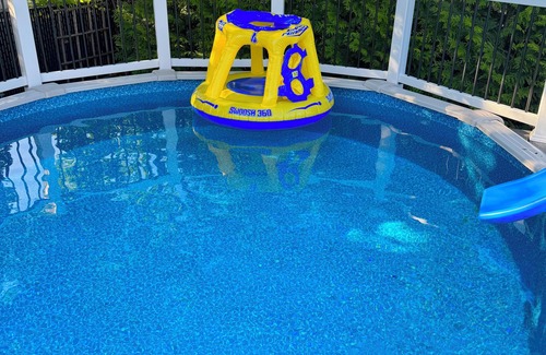 Get ready to relax in this 3-bedroom house in Massapequa Park. Just minutes up one road to the Ryder cup. Relax after watching the Ryder cup in our new heated pool and deck, fire pit, grill, outdoor bar with a tv and all outdoor lightening. We are just steps away from beautiful Massapequa preserve filled with gorgeous hiking trails that bring you right to the Ryder cup. This awesome property features a king bed, a full bed, and 2 twin beds in the bedrooms, along with 3 bathrooms equipped with showers and hair dryers. The living room even has a cozy murphy bed for extra sleeping space. With amenities like AC, heating, washer and dryer and more, guests will have everything they need for a fabulous stay. There are 4 smart tvs in our home including WiFi, Netflix and many other streaming services. There is parking for 4 cars in our driveway. It's easy to see why you'll be able to unwind at our place.