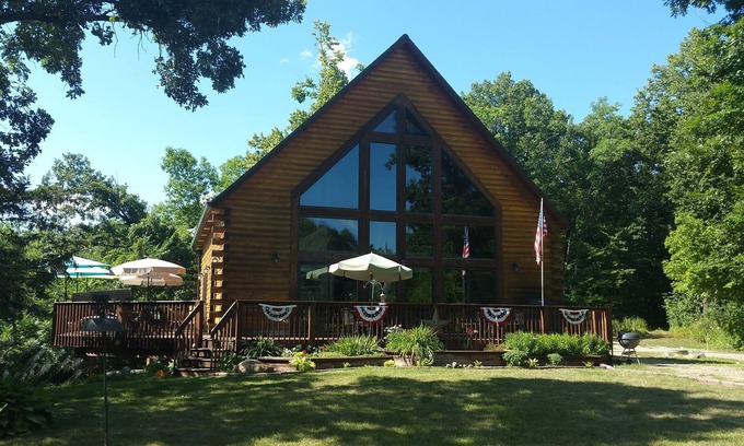 There are Spectacular views either from the loft through the Great Room floor to ceiling windows or looking over the private pond and woodland from the wraparound deck. Enjoy a bonfire with the family on our new expanded flagstone patio. Put the kids to bed and have a romantic soak with your significant other in the new hottub/spa under the beautiful northern night sky enjoying the stars.