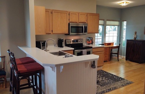 Recently remodeled townhouse in Silverdale is just minutes from St Michaels medical center, Costco, PSNS, Bangor Base and Keyport Naval Base. Enjoy quiet privacy, safety, and Olympic Mountain views while relaxing in comfort with all the amenities of home. Hardwood floors, private deck, 2 car garage and in unit washer and dryer make your stay easy and comfortable. Perfect for traveling professionals and additional guests.