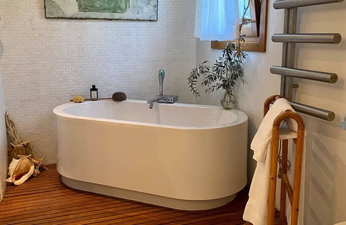 The beach is a 5-10 minute walk away from the house, as are local shops and restaurants. There is a large supermarket in the village where you can find all essentials, as well as a number of chic restaurants with the sea lapping beneath them