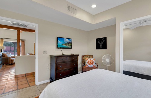 Find yourself living like a local here in Tucson when you book a stay at this lovely home away from home. Boasting intricate tiling throughout, a fully equipped kitchen with all of the appliances of home, and a private pool to escape the heat, there will be no reason to leave! Spend long days in the sunshine with a cold drink in hand as the kiddos splash in the pool or gather on the shaded patio to reminisce with loved ones. When the sun goes down, the fun doesn't have to stop, as there is a stylish bar area to whip up favorite cocktails in and everyone will love gathering for a movie night in the living area! Don't forget to grab a bit of alone time and take advantage of the jetted tub for a relaxing soak to end each dreamy day on a good note.