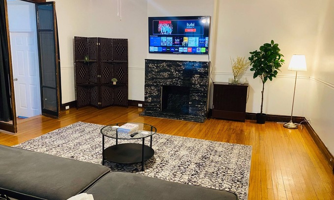 This is a very charming and stylishly updated unit that is perfect for families or large groups. This unit is a 1st-floor unit located in a 4-family private home with its own private entrance. There are 4 bedrooms, 3 full bathrooms. There is an additional sofa bed in the living room. It is located in a quiet, safe, and historic neighborhood. The unit can comfortably fit 12 people (1 Queen, 3 Full, 2 Twins, 1 sofa bed).
